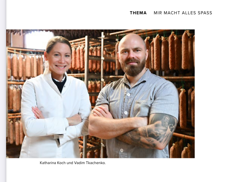 ist da nicht so ausgeprägt. Mitarbeiter wie Vadim sollten die Chance bekommen, solche Unternehmen zu übernehmen, meint sie. Wobei Vadim eben aktuell keine Ausbildung hat. Und die drei Jahre als Azubi hätte er sich schlicht nicht leisten können. Weil sie Vadim nach dem Praktikum direkt angestellt hat, die Agentur für Arbeit außen vor war, gab es in diesem Fall wenigstens keinen großen bürokratischen Aufwand. Und eine Ausbildung, die könne man ja auch nachholen, ergänzt Katharina Koch. Sie ist ja auch erst sozusagen auf dem 2. Bildungsweg Metzgermeisterin