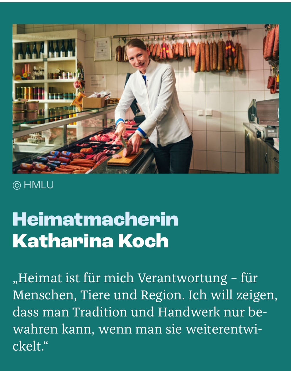 Katharina macht Heimat in Calden Katharina Koch führt die Landfleischerei Koch in fünfter Generation. Nach einem Studium der Politik und Publizistik arbeitete sie bei den Vereinten Nationen und im Bundestag – bis sie merkte, dass ihr das Große zu weit weg war vom Echten. Sie kehrte zurück nach Nordhessen und…